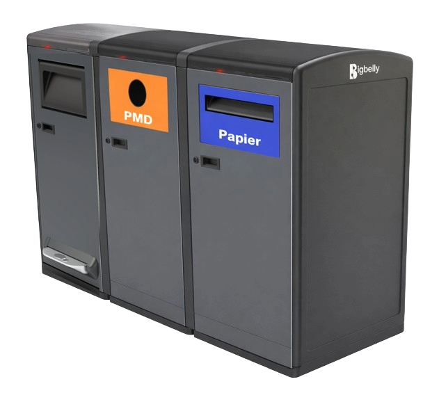 De Bigbelly is een reeks aan mooie gesloten afvalbakken, met als topmodel de Max, een slimme, zonne-energie aangedreven afvalbak met geïntegreerde persfunctie die afval automatisch samenperst, waardoor er aanzienlijk meer volume in één bak past en het aantal ledigingen sterk wordt verminderd.
