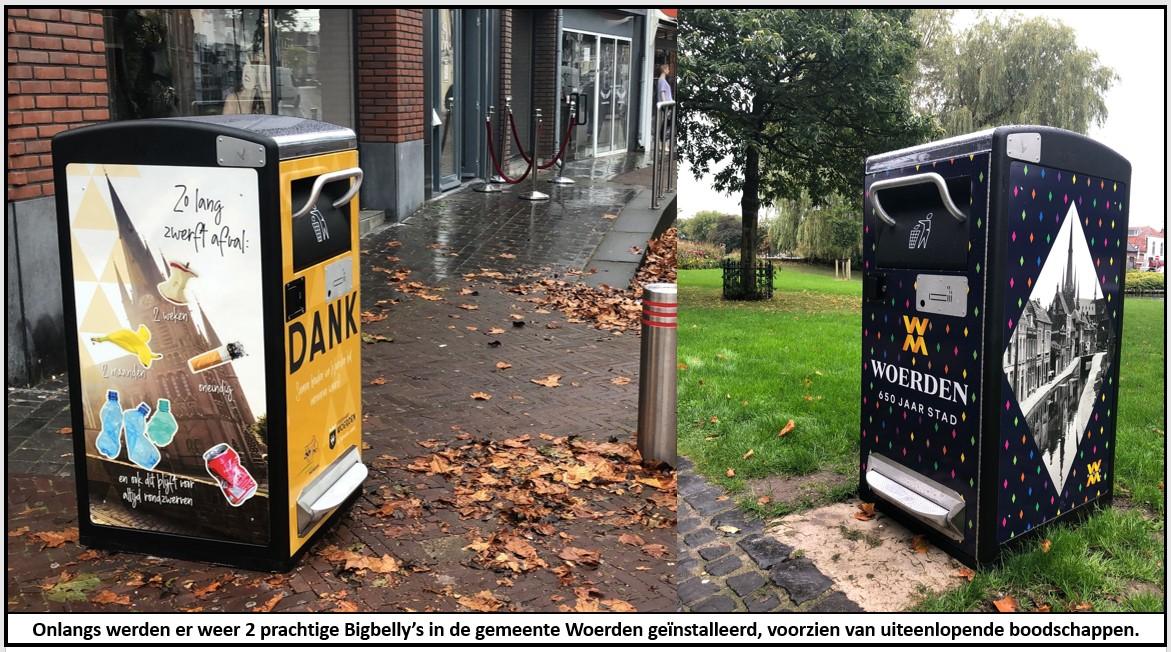 De gemeente Woerden heeft onlangs weer 2 nieuwe Bigbelly’s aangeschaft. Ditmaal werden de Bigbelly’s met een prachtige wrapping uitgerust, die door de gemeente zelf zijn ontworpen. De Bigbelly in het centrum heeft een educatieve boodschap over hoe lang zwerfafval nodig heeft om af te breken. Door middel van wrapping kunnen de Bigbelly’s eenvoudig mooie boodschappen uitdragen of met prachtige designs worden uitgerust, zodat zij in iedere omgeving thuispassen.